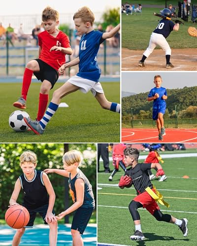 • Quick-Dry & Breathable: Made from 88% polyester and 12% spandex, the four-way stretch fabric effectively wicks away sweat and enhances airflow, keeping your kids dry and comfortable during sports activities
