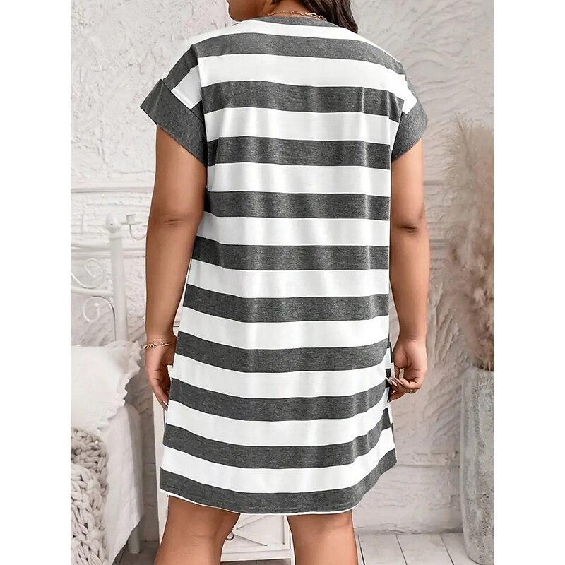 Women's Plus Size Casual Dress Striped Crew Neck Short Sleeve Summer Spring Fashion Modern Casual Mini Dress Daily Holiday Dress 7