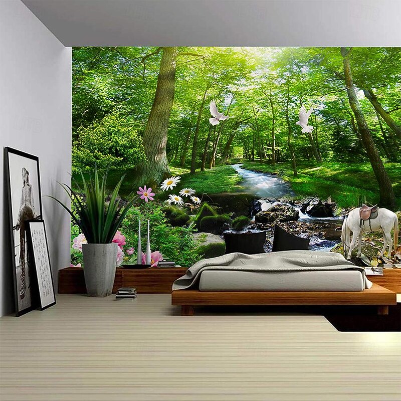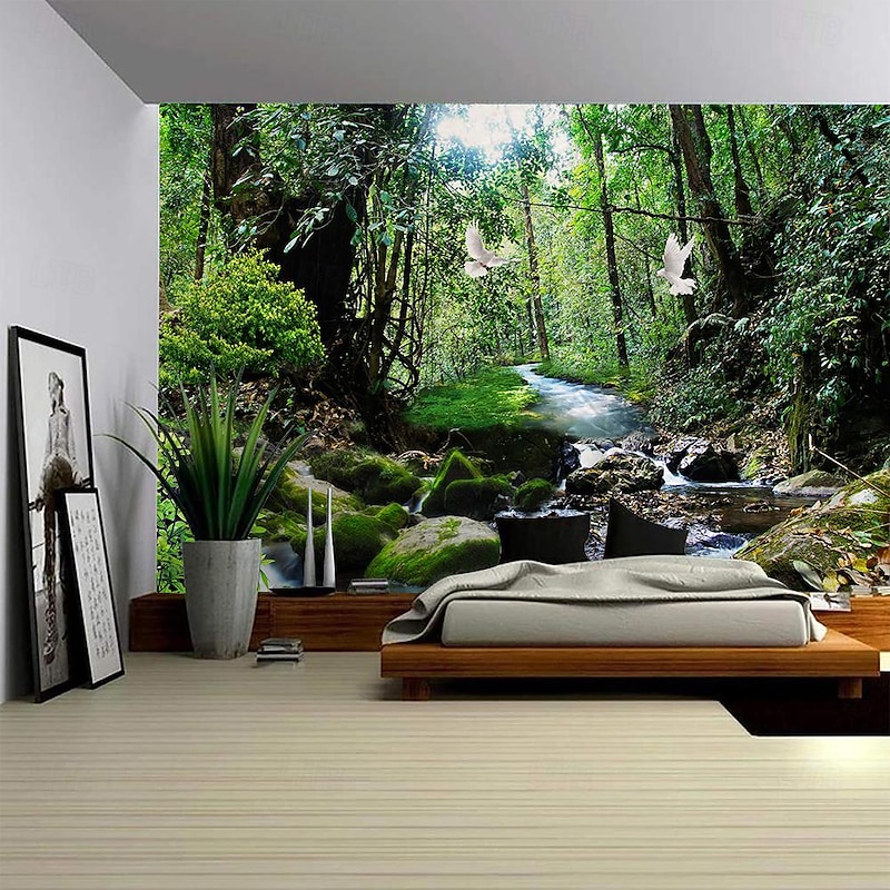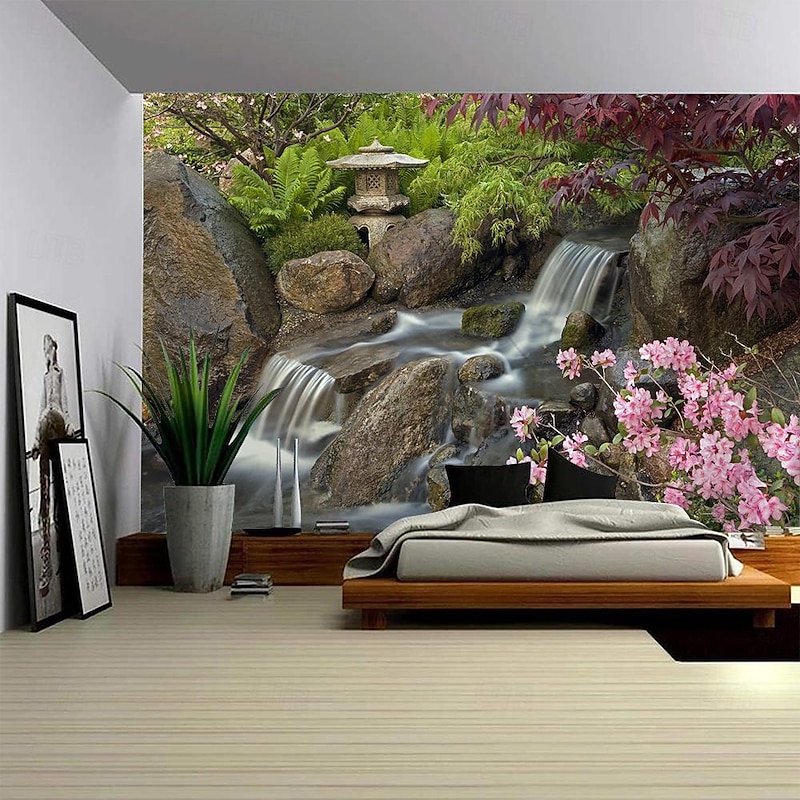 HOT ! Landscape Waterfall Forest Hanging Tapestry Wall Art Large Tapestry Mural Decor Photograph Backdrop Blanket Curtain Home Bedroom Living Room Decoration