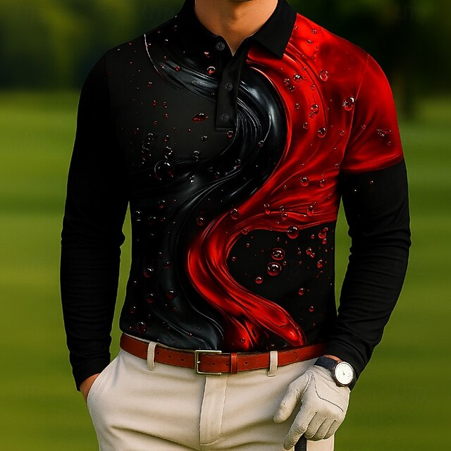 More information about Men's Geometic Golf Polo Long Sleeve Polo Shirts Lapel Casual Outdoor Athleisure Daily Wear 3D Print Buttons Spring Fall Winter White Red Blue