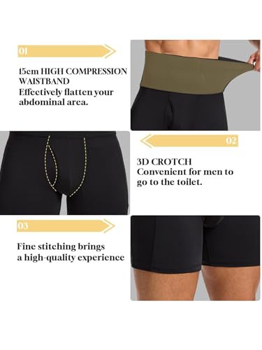 • 3D pouch support and long-legs design: our compression underwear for men is innovatively designed with a 3D contoured pouch that fit the male physiological feature. Waist elastic prevents slipping or rolling up when sitting down or bending over. Shaping underwear extends to mid-thigh, smoothing and shaping the thigh line and enhancing the natural line of the legs.