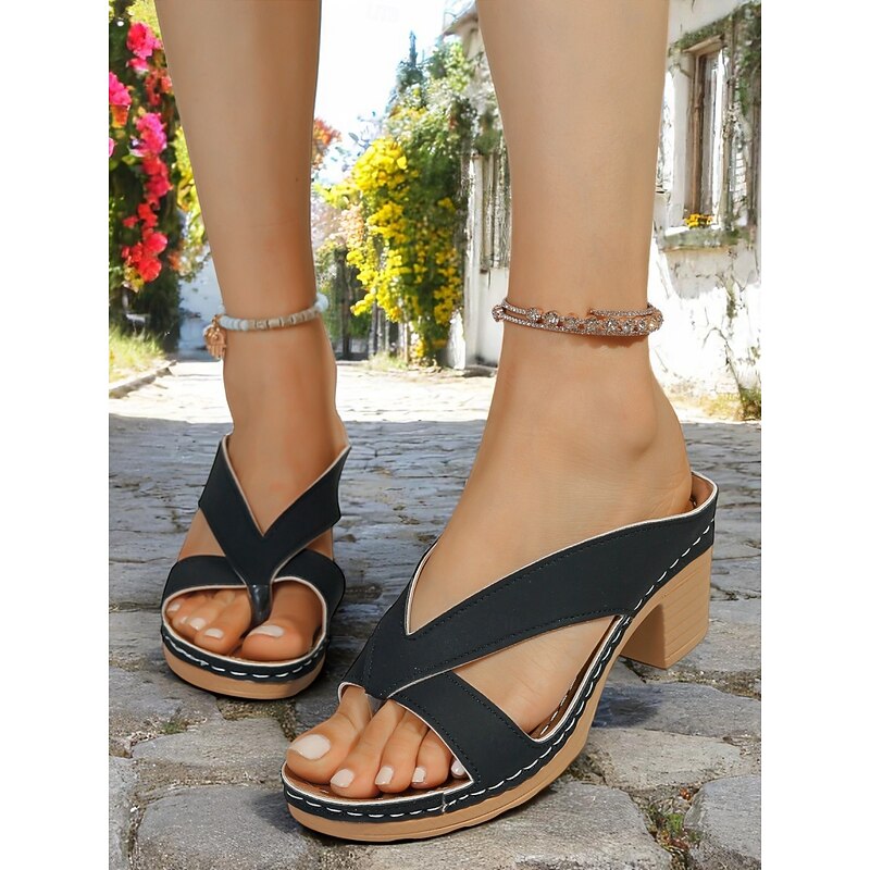 Highlights - Premium faux leather upper for a sophisticated look. - Chunky heel for added stability and comfort. - Round toe shape for a classic and timeless style. - Open toe design for a touch of elegance. - Durable rubber outsole for long-lasting wear. - Stay ahead of the trend with our 2024 platform sandals.
