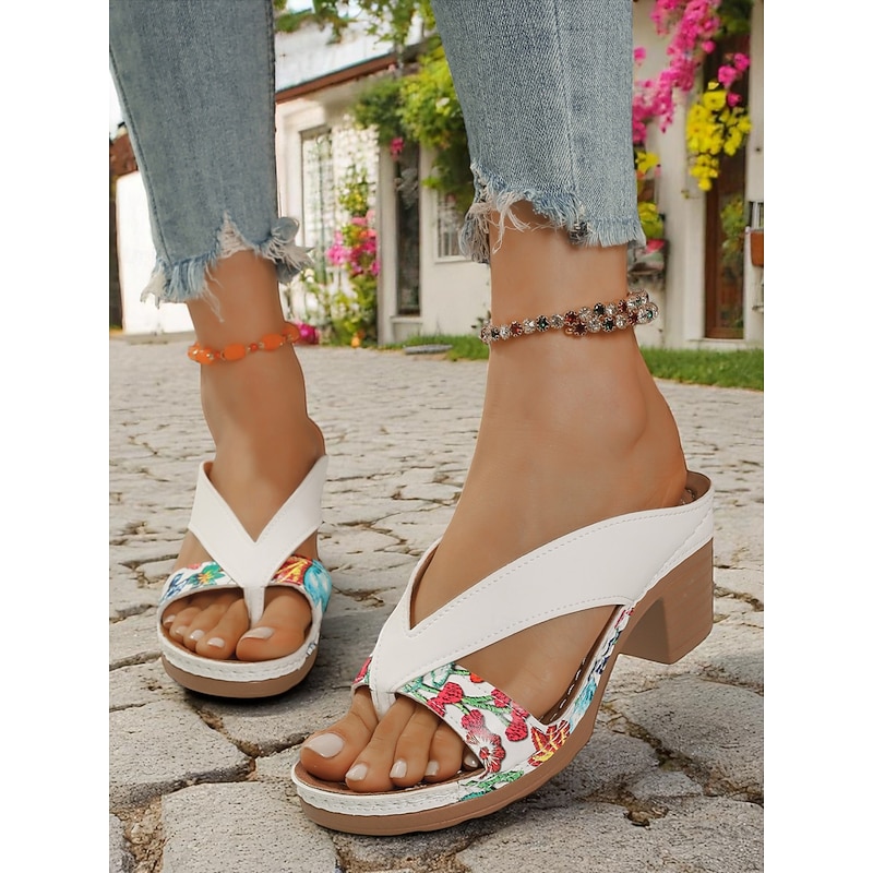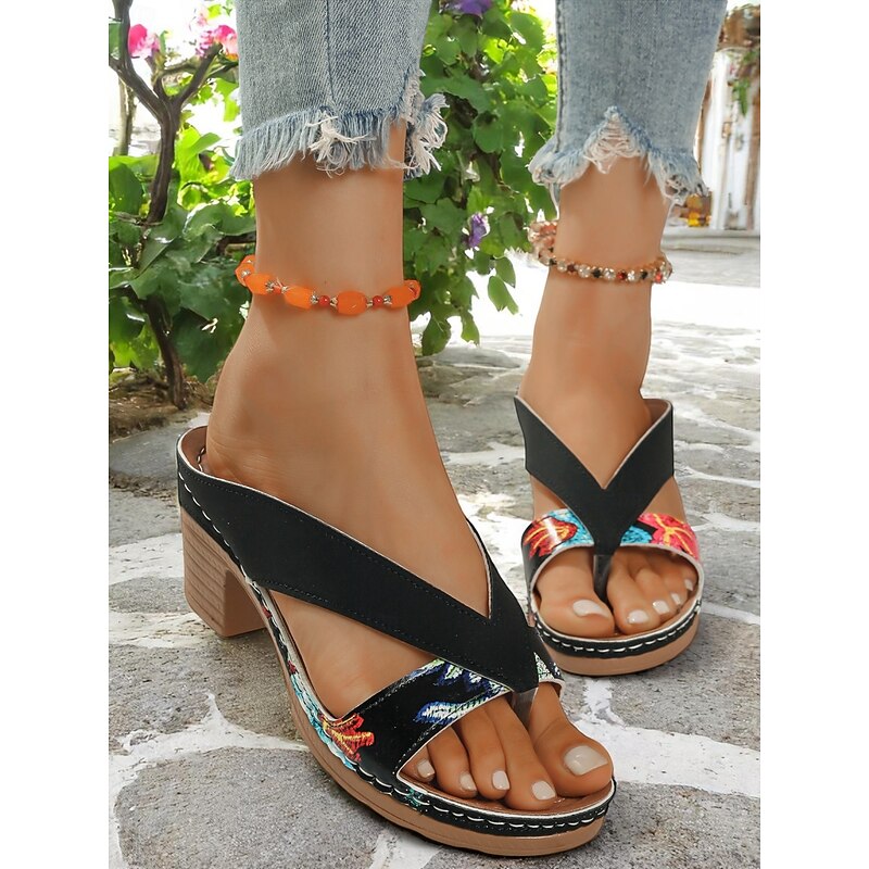 HOT ! Women's Floral T-strap Sandals - Stylish Black and Floral Design with Comfortable Heel, Ideal for Casual Summer Outings and Garden Parties