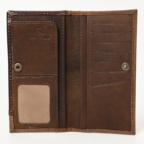 • ✔ Premium Quality Material-: This Is A Bar H Equine Wallet That Is Made With Hand-Crafted Stylish Hand-Tooled Genuine Leather And Full-Grain Vegetable-Tanned Cowhide Genuine Leather Handpicked From Some Of The Best Tanneries In The World. The Leather Ages Gracefully, Developing A Rich Patina Over Time. The Color Of Our Unisex Wallet Is Brown And Available In Sizes H7 X (W3.5).