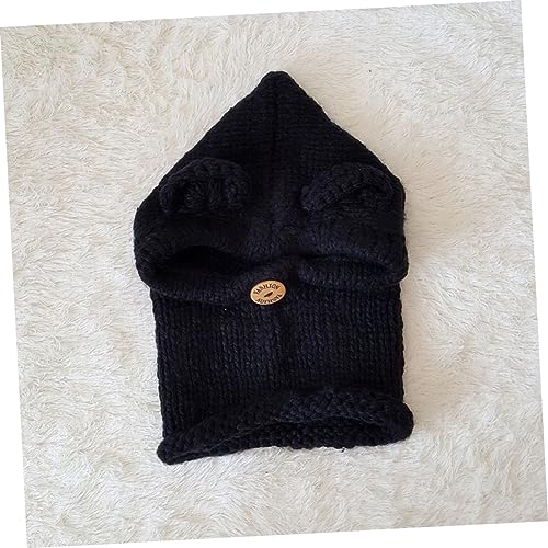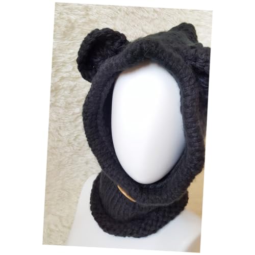 Handmade Kids Bear Hat Knitted Scarf Cap for Winter Kids Beanies Comfortable Elastic Black 1