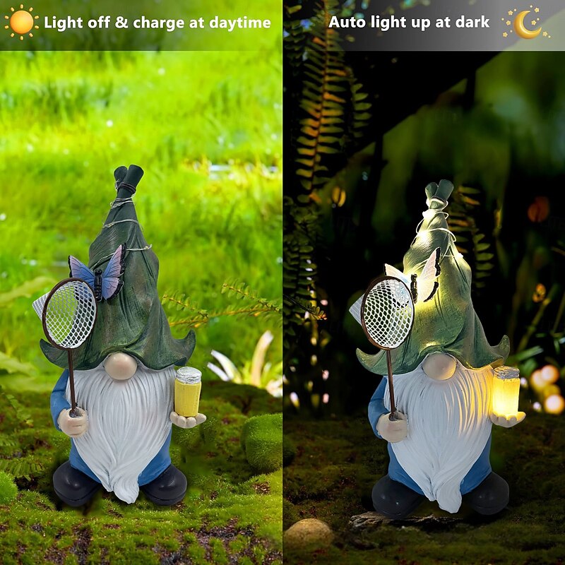 1 Pc Outdoor Solar Landscape Lights Luminous Dwarf Goblin Dragonfly Butterfly Bee Decorative Light Sculpture Light Courtyard Garden Lawn Path Landscape Light 11