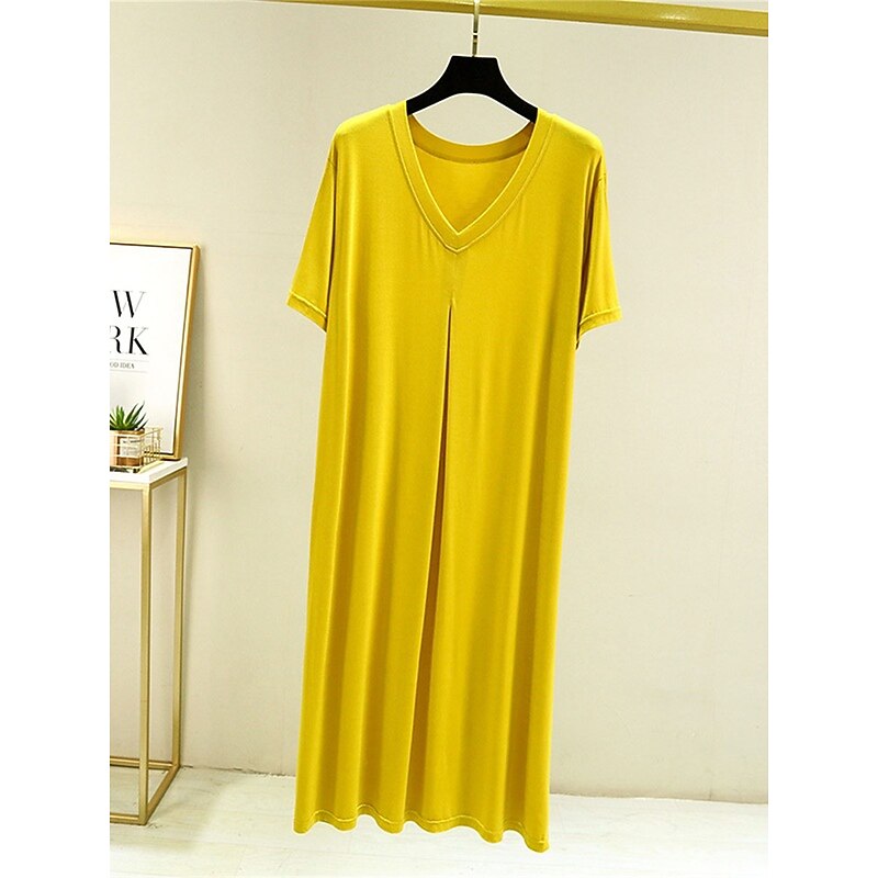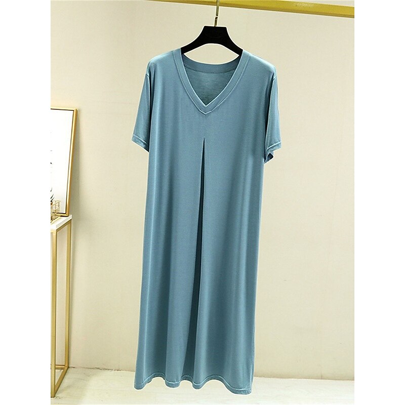 More information about Women's Pajamas Nightgown Nightshirt Dress Pure Color Simple Casual Soft Home Daily Bed Modal Breathable V Wire Short Sleeve Summer Fall Home Outfits