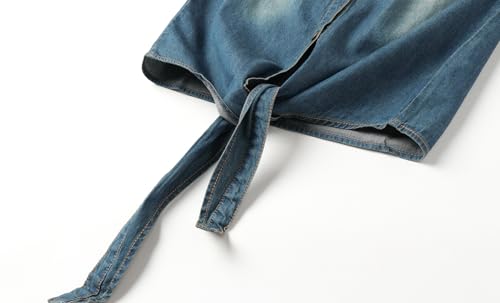 LittleSpring Girls Button Down Denim Shirt with Tie Front 6