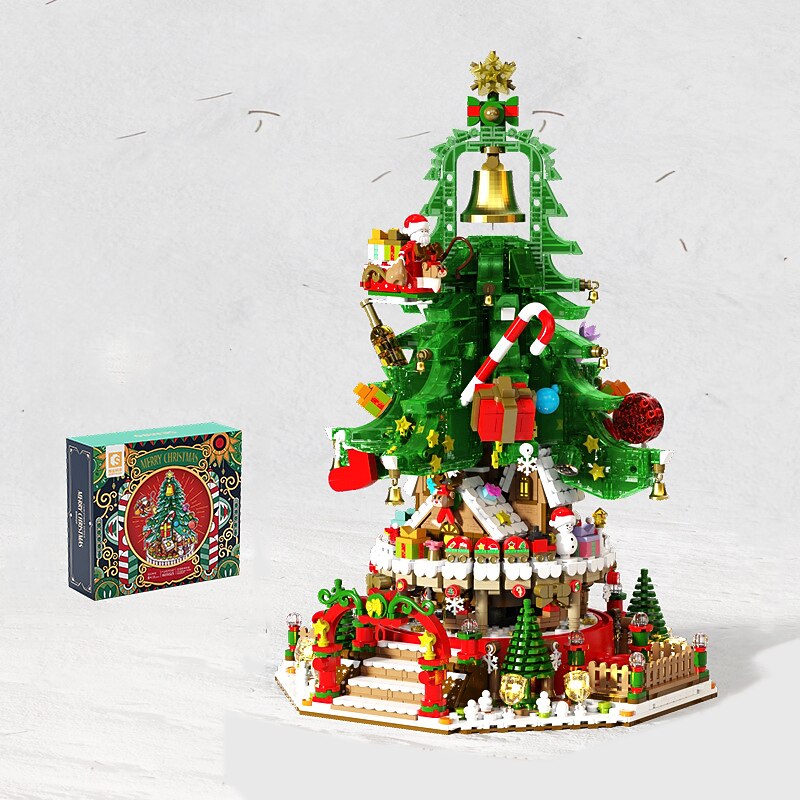Festival Series Crystal Festival Tree Building Blocks Toy Crystal Festival Tree Music Box Creative Puzzle Assembly Toys Festival Gift Halloween/Thanksgiving Day/Festival gift 1