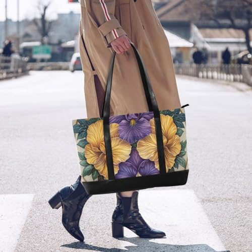 KLL Iris Flower Pattern Vintage Waterproof canvas laptop tote bag with zipper work bags Large Handbag for Travel Essentials Beach Gifts Birthday Gifts for Women with tablet maletines para mujer 7