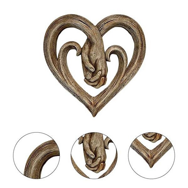Heart Holding Hands Wall Decor Wooden Sculpture Wall Art Handshake Craft Statue for Home Office Garden Decoration- Forever Love
