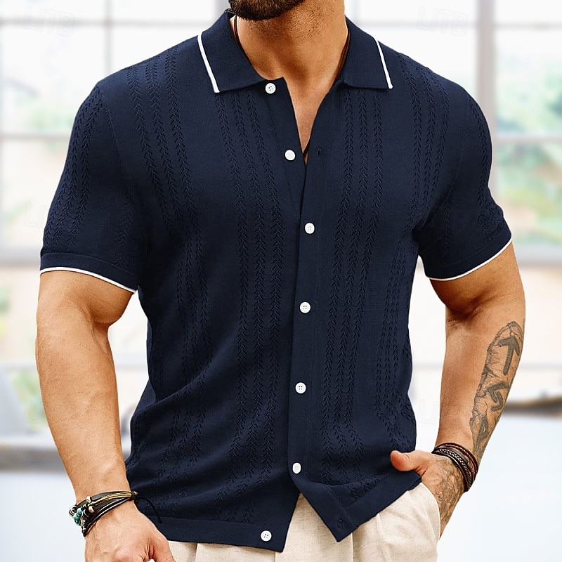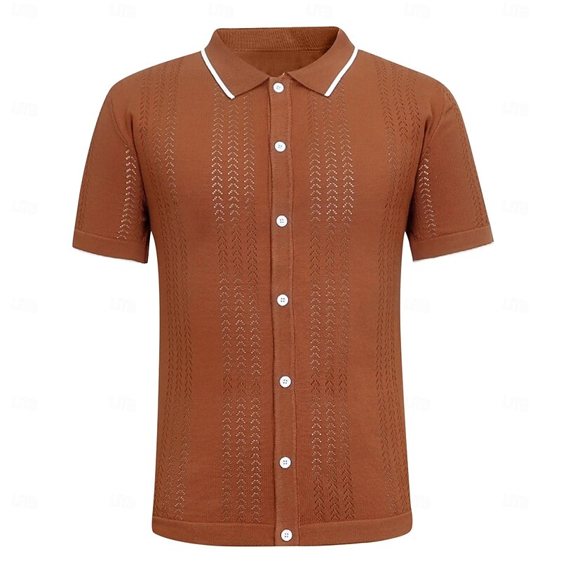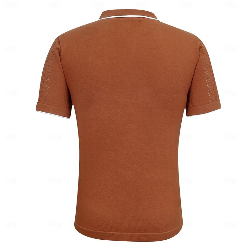 More information about Men's Knit Polo Sweater Golf Shirt Casual Holiday Button Classic Short Sleeve Fashion Old Money Style Striped Button Front Summer Spring Fall Black Champagne Brown Knit Polo Sweater