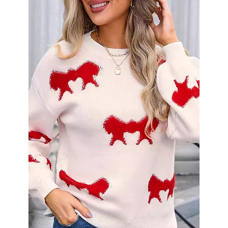 More information about Women's Valentine Pink Sweater Pullover Elegant Color Block Crew Neck Knitted Long Sleeve Regular Tops Knit Fashion Streetwear Outdoor Daily Weekend Pink Red Fall Winter