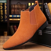 More information about Men's Beige Faux Suede Chelsea Boots -Classic Business Casual Ankle Dress Shoes for Office, Work, and Daily Wear