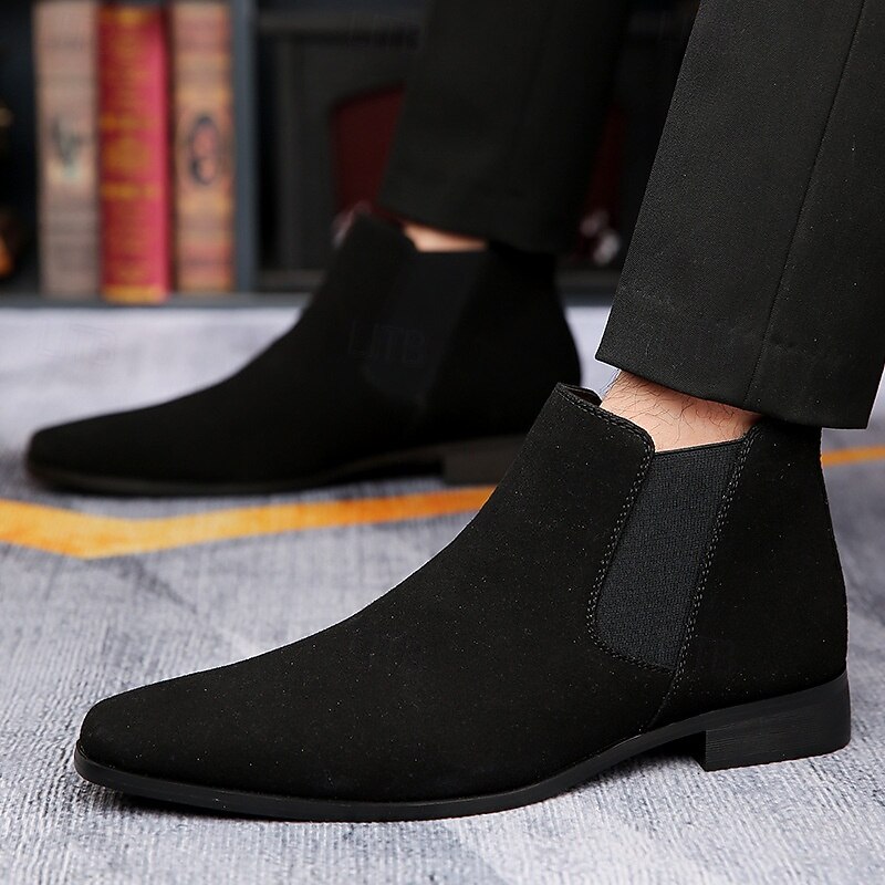 HOT ! Men's Beige Faux Suede Chelsea Boots -Classic Business Casual Ankle Dress Shoes for Office, Work, and Daily Wear