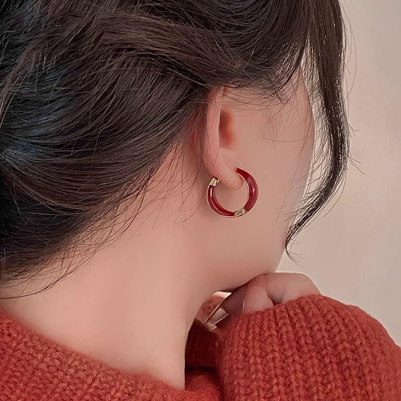 • ELEGANT DESIGN: Classic hoop earrings featuring rich burgundy-red enamel coating with luxurious gold-tone metal accents