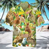 More information about Easter Men's Bunny Easter Egg Shirt Cuban Collar Shirt Button Up Shirt Short Sleeve Vintage Retro Holiday Festival Summer Spring Camp Collar Shirt 3D Print Green