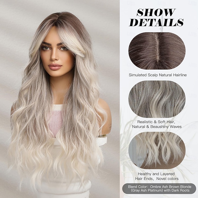 Long Wavy Wig with Bangs for Women Natural Butterfly Haircut  Layered Wavy Synthetic Wigs Curtain Bangs Curly Hair Daily Party Dating 12