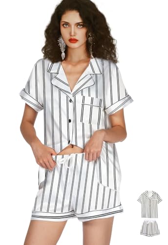 • Occasions-This silky satin pjs short set features a relaxed fit. Perfect for lounging and sleeping, pajama party, girls day, bridal sleepwear, indoor, living room, bedroom, hotel, vocation, travel, and daily sleepwear. And ultra soft sleep sets will keep you from daily stresses and provide you a relaxing and comfortable night.