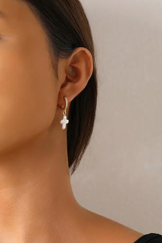 Cross Baroque Pearl Earring Freshwater Pearls Huggies Earrings Cross Pearl Earrings for Women 6