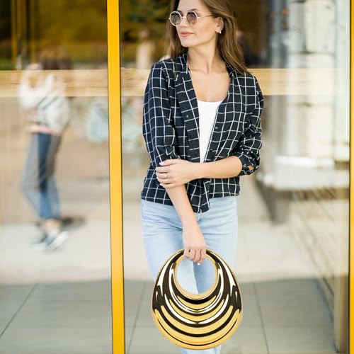 • Gold Moon Purse Clutch: This shimmery metallic evening clutch is designed in a semicircular moon shape, with a unique metal box clutch silhouette that adds a touch of chic elegance to your overall look, making you the center of attention at any party. The bright, lovely, glitter, and eye-catching colors serve as the perfect accent for trendy looks, adding elegance and style to most outfits while reflecting your unique taste.