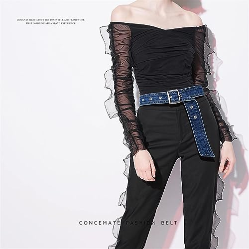 Women's Blue Denim Waist Belt Casual Vintage Tiny Belt with Skirt Dress Suit Coat Accessories Belt Versatile 7