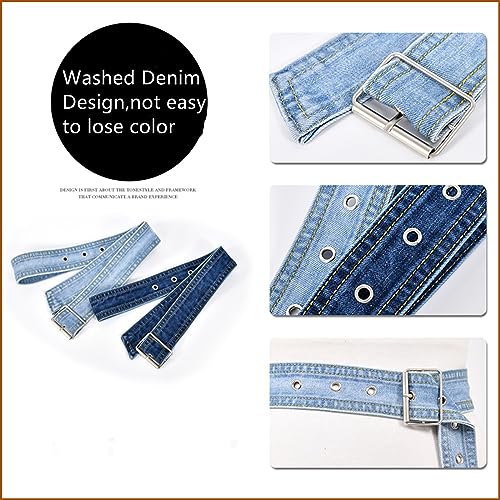 More information about Women's Blue Denim Waist Belt Casual Vintage Tiny Belt with Skirt Dress Suit Coat Accessories Belt Versatile
