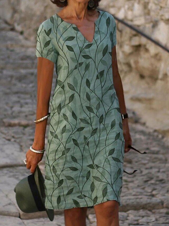 Women's Mini Dress Casual Dress Basic Casual Vacation Work Daily Regular Fit Graphic Short Sleeve V Neck Blue Purple Green Summer Spring 9