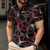 Men's Abstract Geometic Polo Short Sleeve Polo Shirts Lapel Casual Street Athleisure Daily Wear 3D Print Buttons Summer Red Blue Orange 5