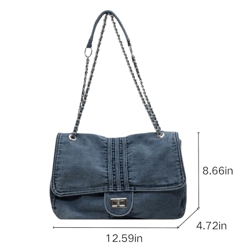 More information about Denim Crossbody Shoulder Bag For Women,Washed Jeans Handbags Totes With Chain Straps,Denimflap Quilted Bag 2024
