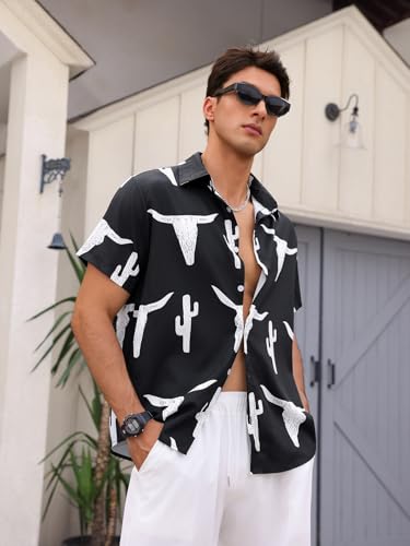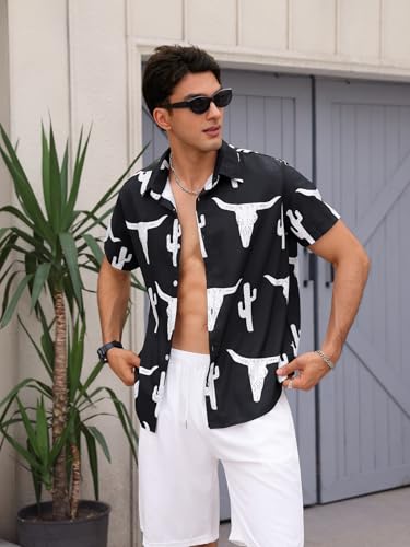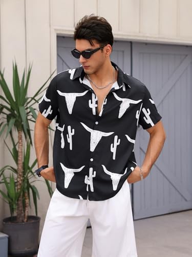 More information about WDIRARA Men's Cow Print Button Front Summer Casual Shirts Colorblock Short Sleeve Collared Neck Shirts