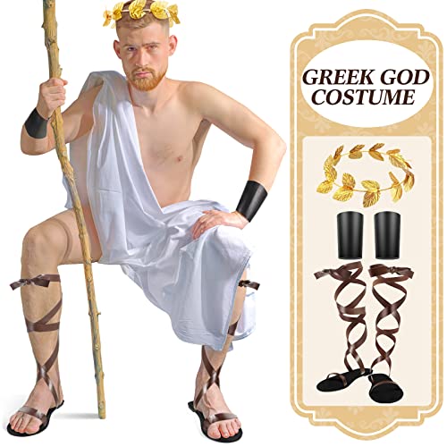 • Mens Toga Costume Accessories: you will get 1 pair of adult Roman sandals in brown, 1 pair of leather bracelets in black and 1 piece of roman laurel wreath, which are an ideal costume accessory for Grecian and Roman royalty costumes and also an excellent addition to your Halloween cosplay