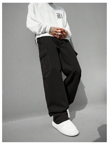 OYOANGLE Men's Cargo Denim Pants Flap Pocket Zipper Fly Jeans Straight Leg Trousers with Pocket 5