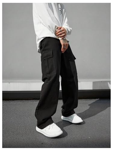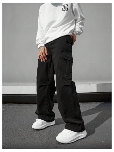 More information about OYOANGLE Men's Cargo Denim Pants Flap Pocket Zipper Fly Jeans Straight Leg Trousers with Pocket