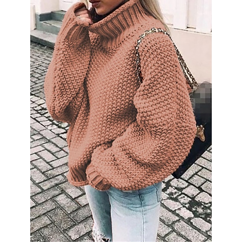 More information about Women's Pullover Sweater Jumper Stylish Casual Soft Solid Color Ribbed Turtleneck Oversized Long Sleeve Regular Tops Knit Daily Going out Weekend Black Pink Fall Winter