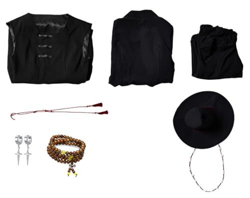 • COSTUME SET: Adult the Music Comedy Singers Cosplay Costume Super Villain Singing Outfit Boys Music Band Cosplay Black Cloak Hanfu Suit Gothic Sleeveless Jacket Tunic Robe Pants Hat Waistrope or Earring Full Set the Sing and Dance Band Uniform Steampunk Dark Suit for Men Halloween Carnival Party Cosplay or Musical Opera Stage Performance.