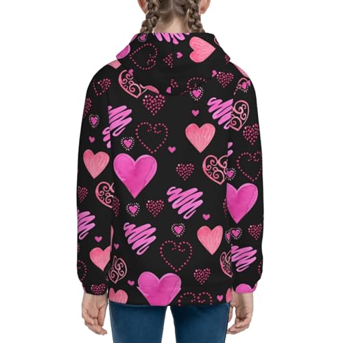 Red Watercolor Hearts Kids Pullover Hoodies Boys Zip Up Sweatshirts Girls Athletic Clothes with Pocket 5
