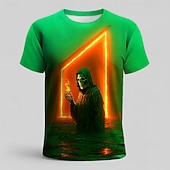 More information about Halloween Men's Optical Illusion 3D Reaper T Shirt Short Sleeve T shirt 3D Print Crew Neck Shirt Exaggerated Designer Horror Party Street Holiday Blue Green Summer Spring All Seasons Clothing Apparel