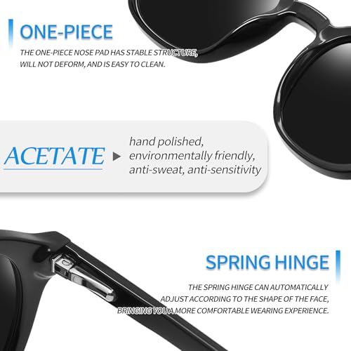 • Polarized & UV400 Protection: Designed for outdoor clarity and comfort, the polarized lenses of Joopin acetate sunglasses block intense glare from surfaces like water, roads, and snow. With 100% UV400 protection, your eyes are shielded from harmful UVA and UVB rays. Joopin sunglasses polarized UV protection reduces eye fatigue and improve visibility in bright conditions. Whether you're driving or enjoying the sun, Joopin polarized glasses keep your vision sharp and protected