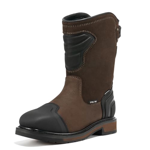 NINGO Steel Toe Work Boots for Men, Waterproof Safety Boots with All-Around Protection, Mens Square Toe Construction Boots with Slip Resistant & EH Protection, for Industrial Motorcycle 6