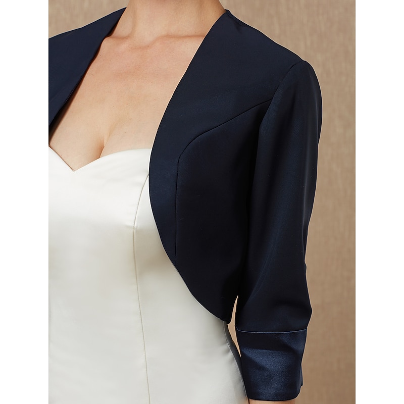 More information about Women's Wrap Bolero Shrug Mother's Wraps Coats / Jackets Elegant 3/4 Length Sleeve Satin Wedding Guest Wraps With Pure Color For Party Spring & Fall dress to impress