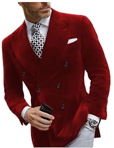 • Features: Mens Double Breasted Blazer.This Mens Velvet Suit Jacket Offers a Lightweight & Breathable Experience,It Provides Comfort and Ease Of Movement. Perfect For Cold Weather & Formal Occasions.Double Breasted Blazer,buttons Closure,Peak Lapel,2 Usable Side Pockets,Two Vents at The Back.