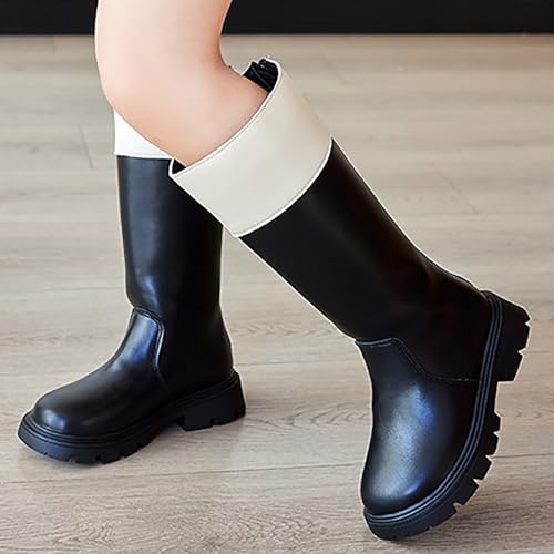 HOT ! IWIHMIV Girls Riding Boots Girls Fashion Boots Girls Booties Girls Mid Calf Boots Side Zipper Riding Boots Princess Tall Boots
