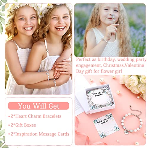 Yinkin 2 Sets Flower Girl Bracelet Wedding Set 2 Proposal Wristbands 2 Cards 2 Box with Raffia Heart Charm Wristbands Gift Thank You for Being My Flower Girl 2