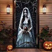 More information about Halloween Door Cover Outdoor Banners Ghost Bride Spider Psychedelic Dark Punk Gothic Style Party Outdoor Shooting Backgrounds Front Door Wall Porch Home Decor
