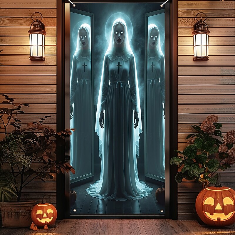 Halloween Door Cover Outdoor Banners Ghost Bride Spider Psychedelic Dark Punk Gothic Style Party Outdoor Shooting Backgrounds Front Door Wall Porch Home Decor 12