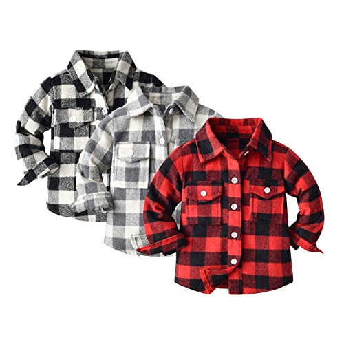 • Toddler Baby Girl Boy Shirt Jacket Plaid Flannel Shacket Long Sleeve Lapel Button Down Coat Tops Fall Winter Clothes Boys Girls Flannel Plaid Shirt Jacket Long Sleeve Lapel Button Down Pocketed Shirts Regular Fit Casual Fall Coat Toddlers and Kids Boys Girls Lined Snap Flannel Shirt Jacket,Cozy Plaid Flannel Shacket