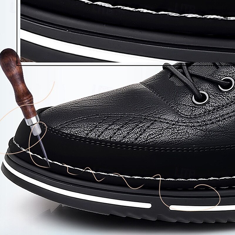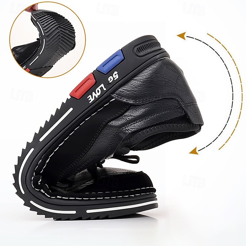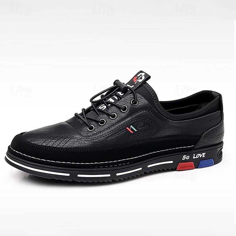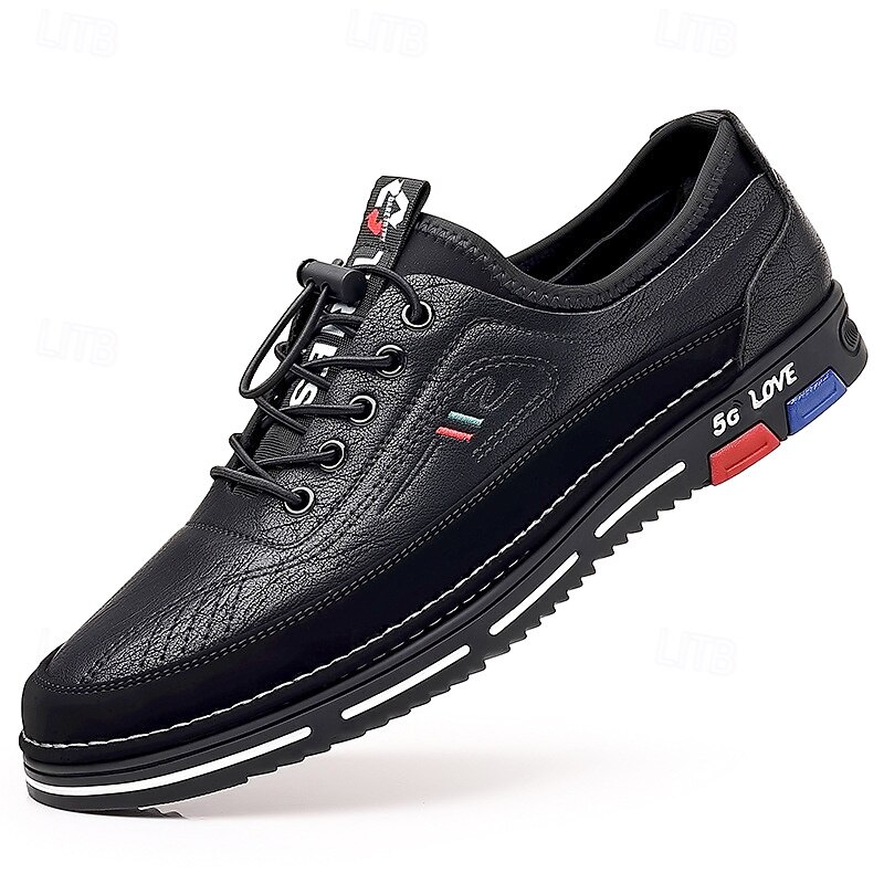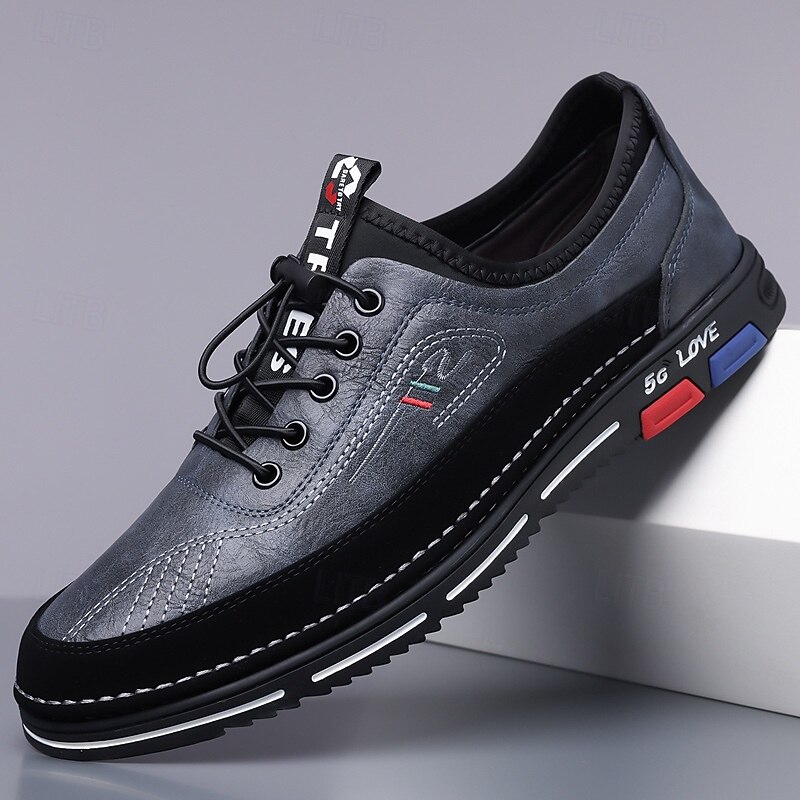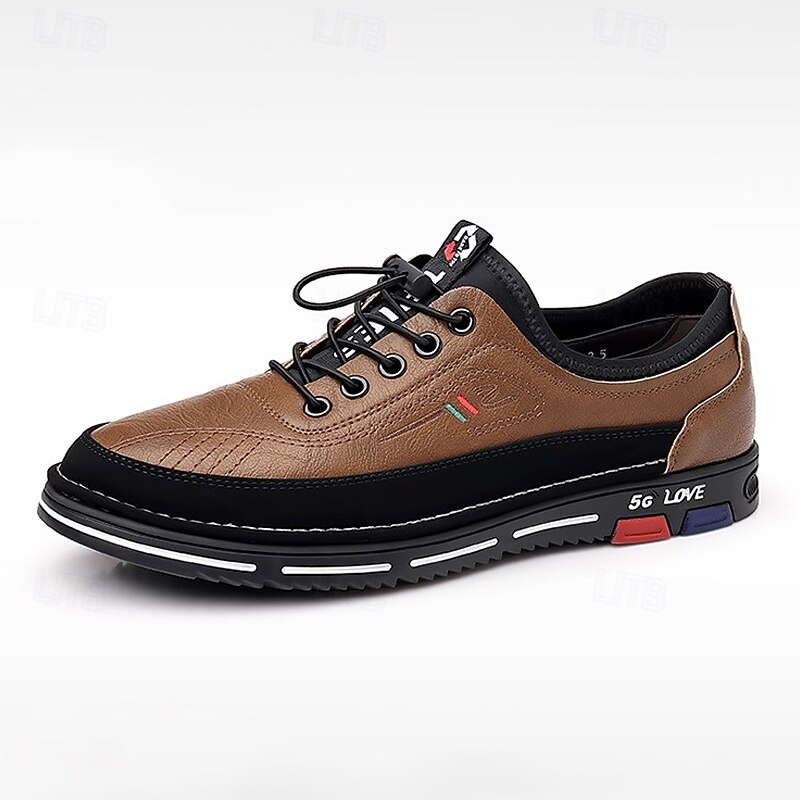 Highlights [Fabric]: Crafted from high-quality PU leather, these men's shoes offer both durability and a sophisticated appearance. The synthetic leather is designed to withstand everyday wear, ensuring long-lasting use while maintaining its classic brown hue. [Style and Fit]: The shoes are designed with a round toe shape, providing ample room and comfort for prolonged wear. Their business-casual style merges seamlessly with sporty elements, offering versatility in styling and comfort. [Design Highlights]: These shoes feature a striking lace-up design with black laces and eyelets that ensure a secure fit. The outsole is adorned with a bold mix of black, red, and blue accents, highlighted by the contemporary 5G LOVE print, offering a latest edge. The white stitching contrasts sharply against the black sole, enhancing the overall aesthetic. [Occasions]: Perfect for casual outings, daily wear, and smart-casual events. Whether you're heading to a weekend brunch or a relaxed office gathering, these shoes provide a blend of style and comfort suitable for various occasions. [Size Range]: Available in a wide range of sizes from US7 / EU39 / UK6 / CN39 to US13.5 / EU47 / UK12.5 / CN50, catering to a broad audience with diverse size needs. Perfect for everyday use. finest materials and excellent craftsmanship ensure long-lasting durability.