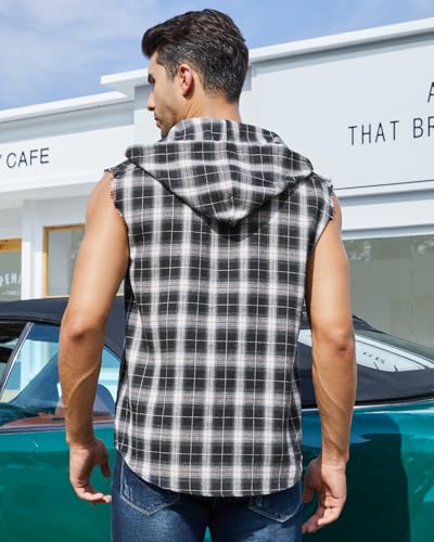 • DESIGN FEATURES: Fashion sleeveless with hat design,and practical and both individual character and sport function.For everyday casual wear,special cool in hot day and show your Strong and powerful muscles. Shirt is crafted from cotton in a classic plaid design.It has a classic collar, a sleeveless design, a chest pocket, a straight fit and a curved hem. Team yours with slim-cut jeans