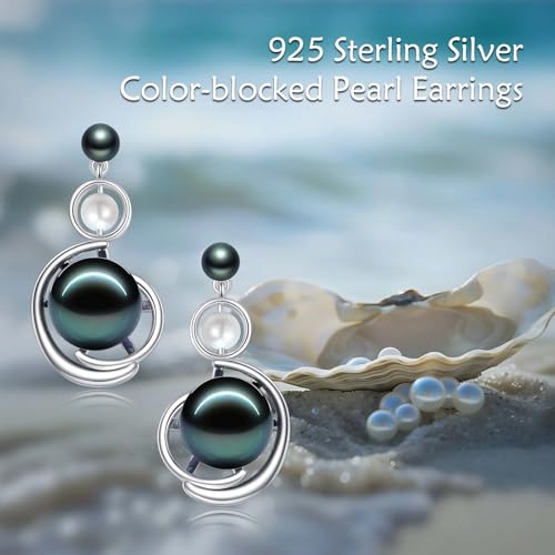 TIGERRIDER Black and White Pearl 925 Sterling Silver Earrings Jewelry Gift for Women Birthday Christmas 4